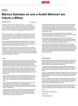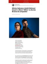 A música de Milton Nascimento está entranhada na alma do povo brasileiro, é a trilha sonora do país há várias décadas. A atemporalidade de sua obra é tal, levando a crer que, de uma certa forma, ela sempre esteve presente nas ruas e matas do Brasil, mesmo antes dele existir. “Milton reúne um Brasil inteiro, traz uma ancestralidade, uma história de um Brasil profundo, que é nossa própria história e que vem na voz dele, tanto no som da voz e da alma, quando ele canta, como na escrita. É um pilar da cultura brasileira, ele coloca a gente nesse lugar, como se fosse uma catedral nossa”, exalta Mônica Salmaso. A relação dela e de André Mehmari com essa obra também vem dessa sensação de permanência e pertencimento. “Essa música é parte indissociável da minha vida”, afirma André. Juntos, lançam ‘Milton’, pela Biscoito Fino, justamente no dia 26 de outubro, quando se celebram 80 anos de um dos mais importantes artistas brasileiros. Mônica e André já percorreram algumas cidades brasileiras com o show homônimo, mas agora o projeto ganha seu registro definitivo.
