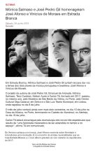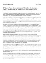 The album Estrada Branca (White Road) brings the meeting of the voices of Mônica Salmaso and Portuguese singer and musician José Pedro Gil around the work of Vinicius de Moraes and José Afonso, two of the most important composers from Brazil and Portugal, respectively. In addition to the album (which is now coming to Brazil via Biscoito Fino in digital and physical CD formats), Mônica Salmaso and João Pedro Gil have performed in Porto, Sintra and Lisbon, in Portugal. João Pedro Gil collaborated with projects by other notable artists, like Maria João, Carminho, Pedro Jóia and Ney Matogrosso.
